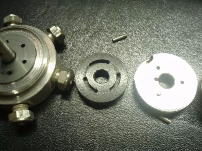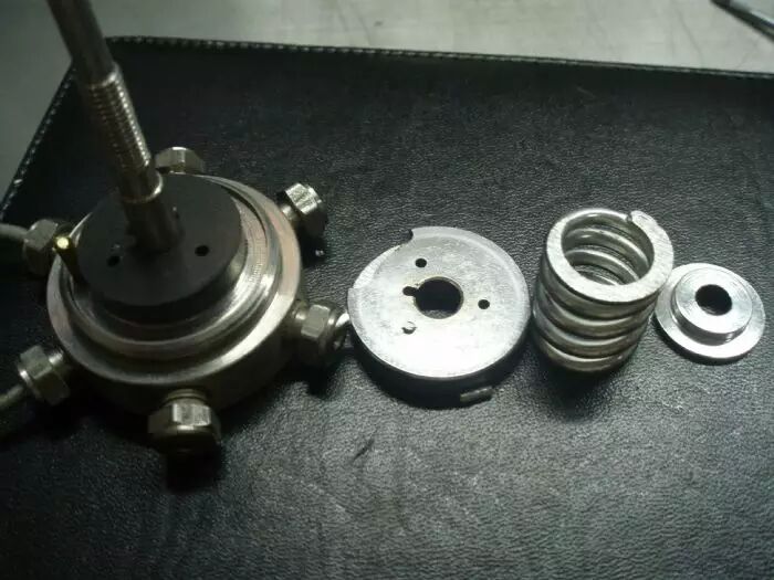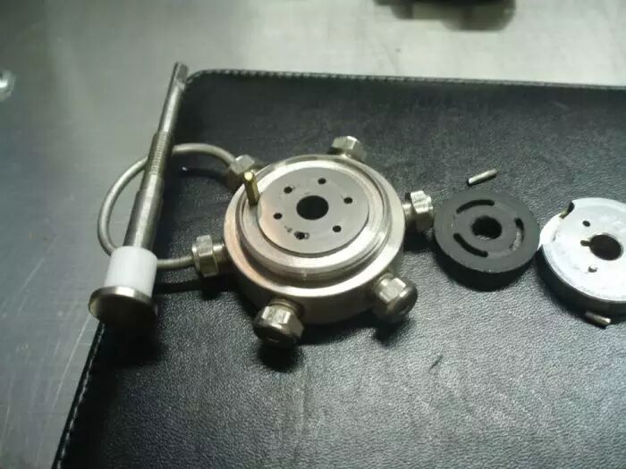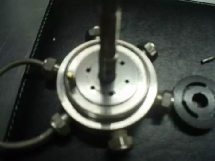 15、看看基座吧,六个小孔,外带一个阀杆。就这么简单。干脆阀杆也拆吧,大家没事别模仿,这里面有点小道道,不太容易弄的。声明在先。